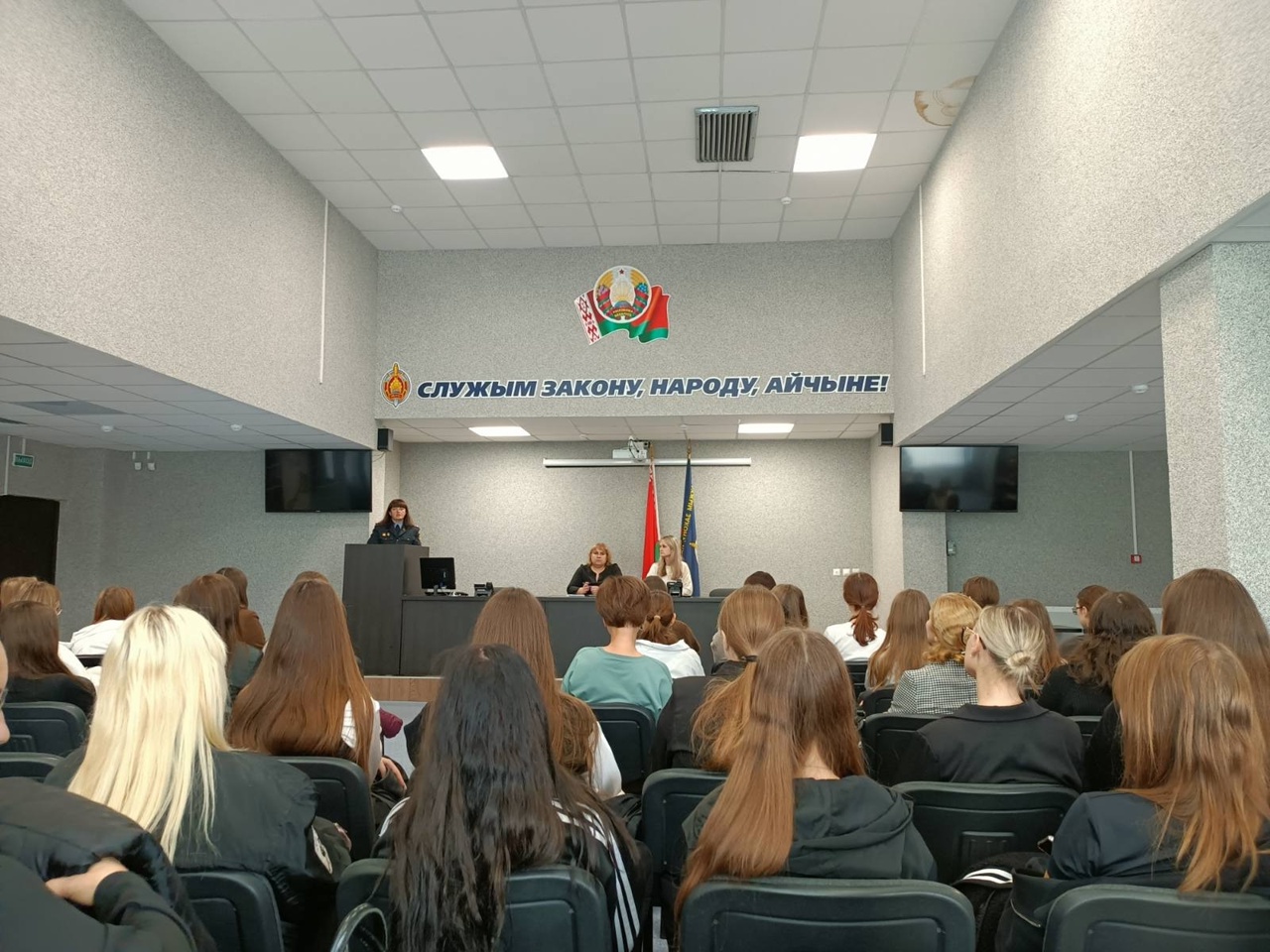 7 октября учащиеся колледжа посетили профилактическое мероприятие для девушек по теме «Раннее вступление в половую связь, инфекции, передающиеся половым путем, женская гигиена» в рамках районного профилактического информационно-образовательного проекта «Территория сотрудничества» на базе ОВД администрации Первомайскогорайона г.Витебск