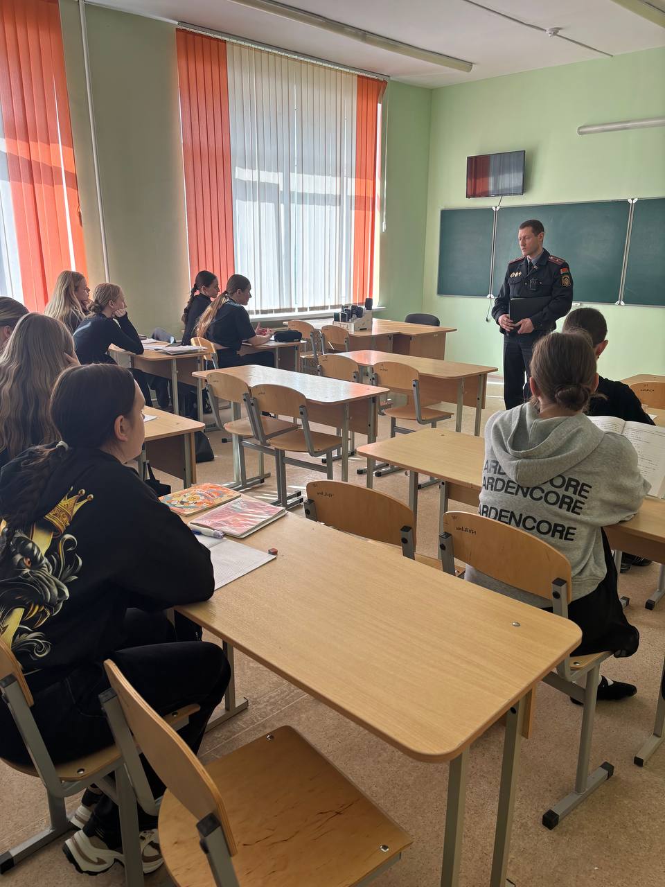 Встреча учащихся второго курса с инспектором ИДН, беседа по профилактике правонарушений и преступлений.