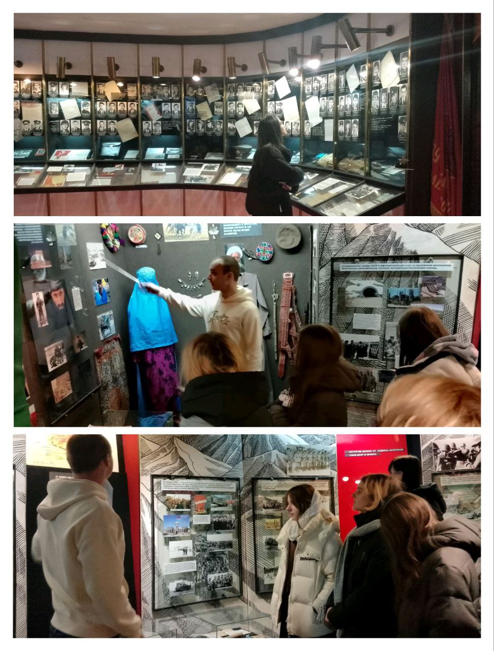 25 февраля 2026 года учащиеся первого курса специальностей дизайн и декоративно-прикладное искусство посетили Витебский городской музей Воинов-интернационалистов. В ходе экскурсии ребята познакомились с культурой Афганистана, прослушали подробную лекцию о том с чего начинался, как развивался вооружённый конфликт и какое участие в этом столкновении принимал Советский Союз, о судьбах солдат, попавших в горячие точки, увидели снаряжение и муляжи вооружения.