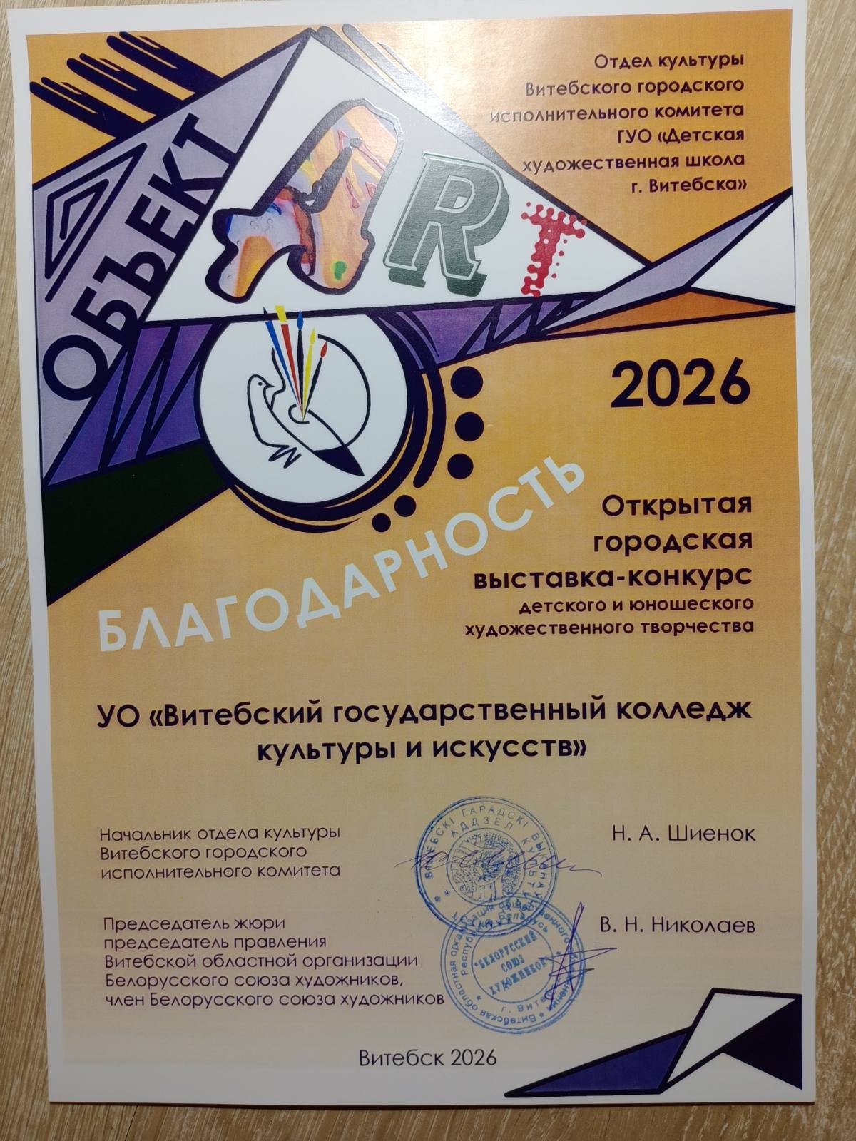22 января состоялось награждение победителей открытой городской выставки-конкурса детского и юношеского художественного творчества "Арт-объект 2026", в которой принимали участие более 350 работ учащихся детских художественных школ и школ искусств Витебска, Витебской области и России. Учащиеся специальности Дизайн нашего колледжа получили следующие награды: